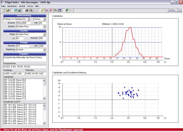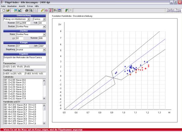 übernommen und berechnet ob die bisher gemessenen Bienen den Merkmalen der
