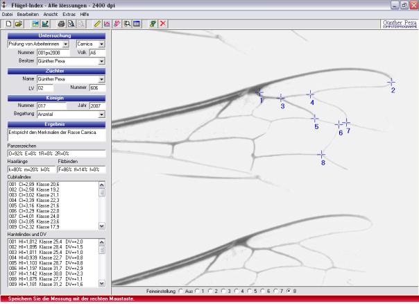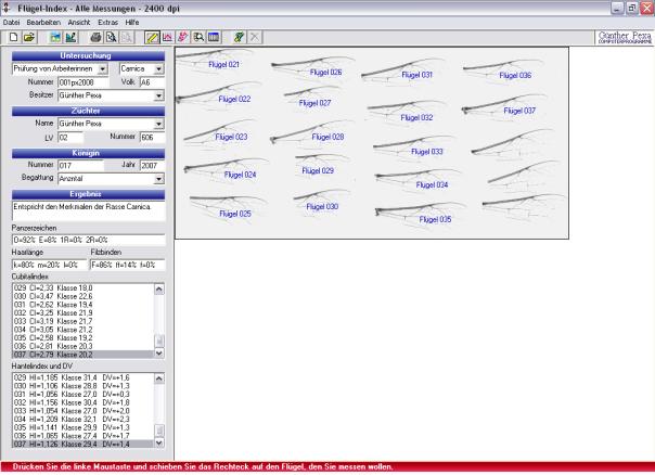 Flügel werden gescannt, der Reihe nach vergrößert und durch Klick auf