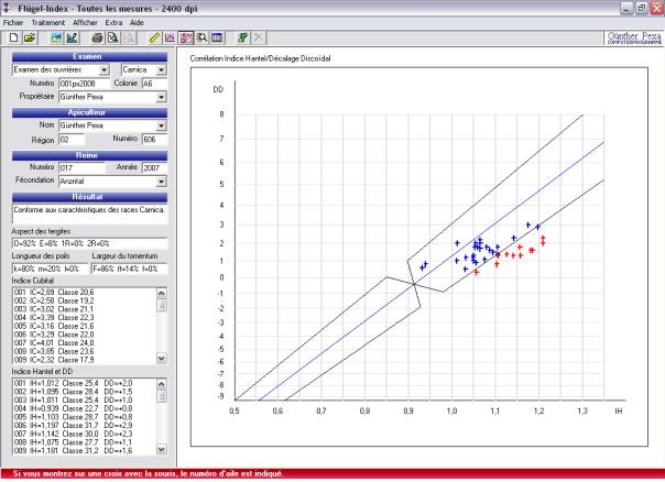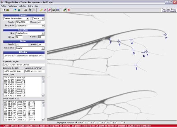Flügel-Index pour examiner des caractéristiques d'abeilles à miel.