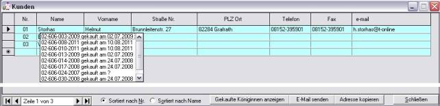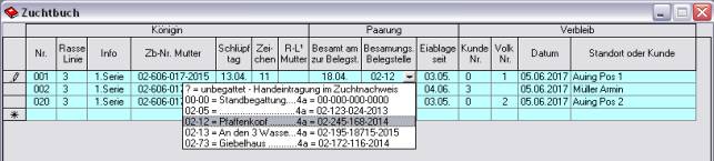Tabelle alle Königinnen, die für die Zucht in Frage kommen.