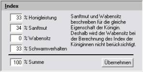 berechnet. Hier wird aber nur der Index von Königin und Familie #) angezeigt.