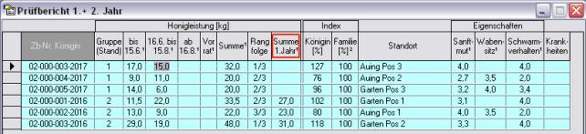Prüfbericht 1.+ 2.Jahr wird anstelle von Summe 2. Jahr bei zweijährigen Königinnen die