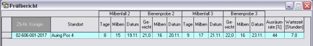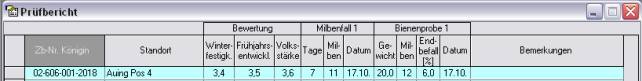 des Standorts im Prüfbericht und das Eingeben der Varroa- Werte im